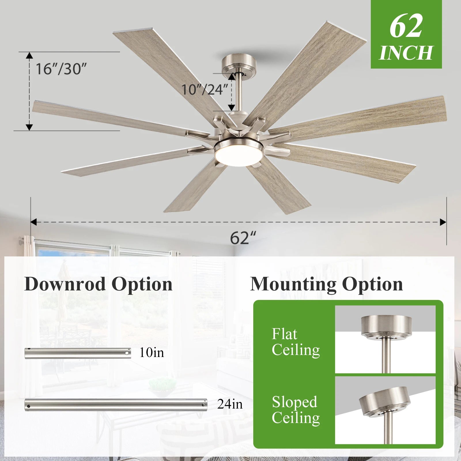 62"Ceiling Fan with Light